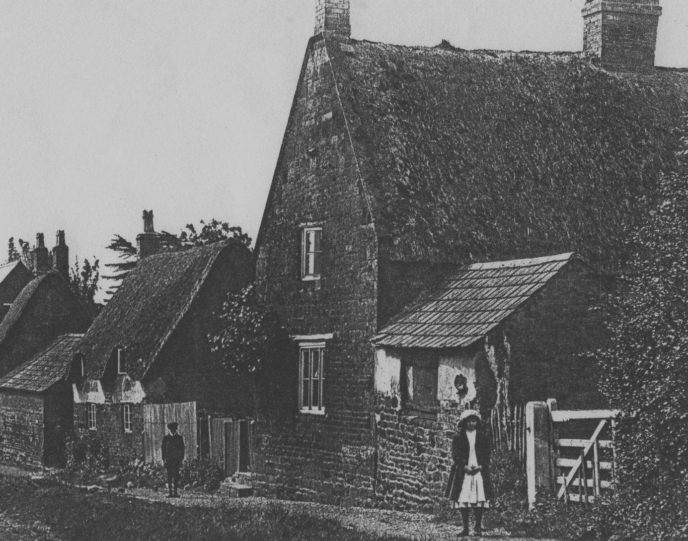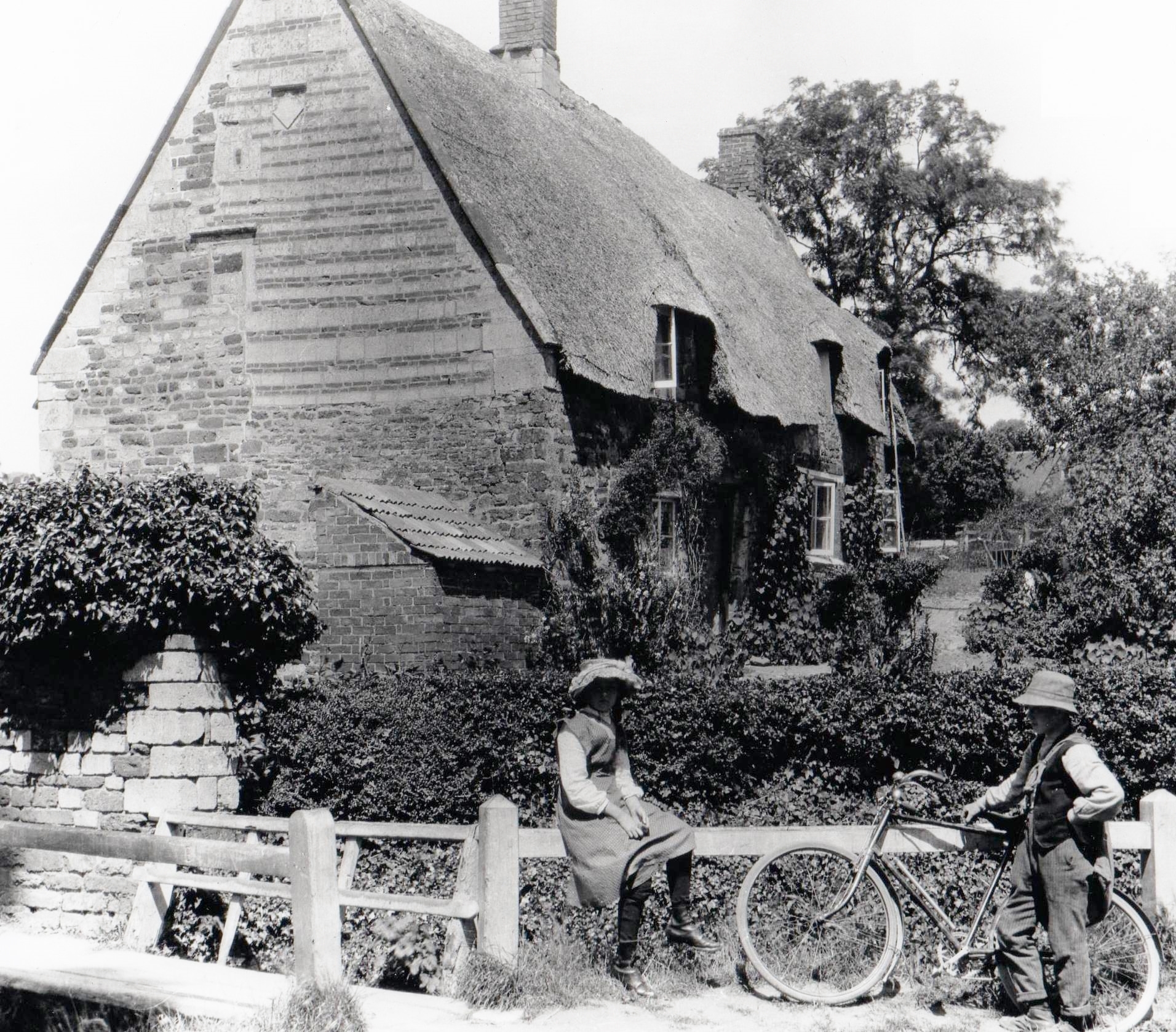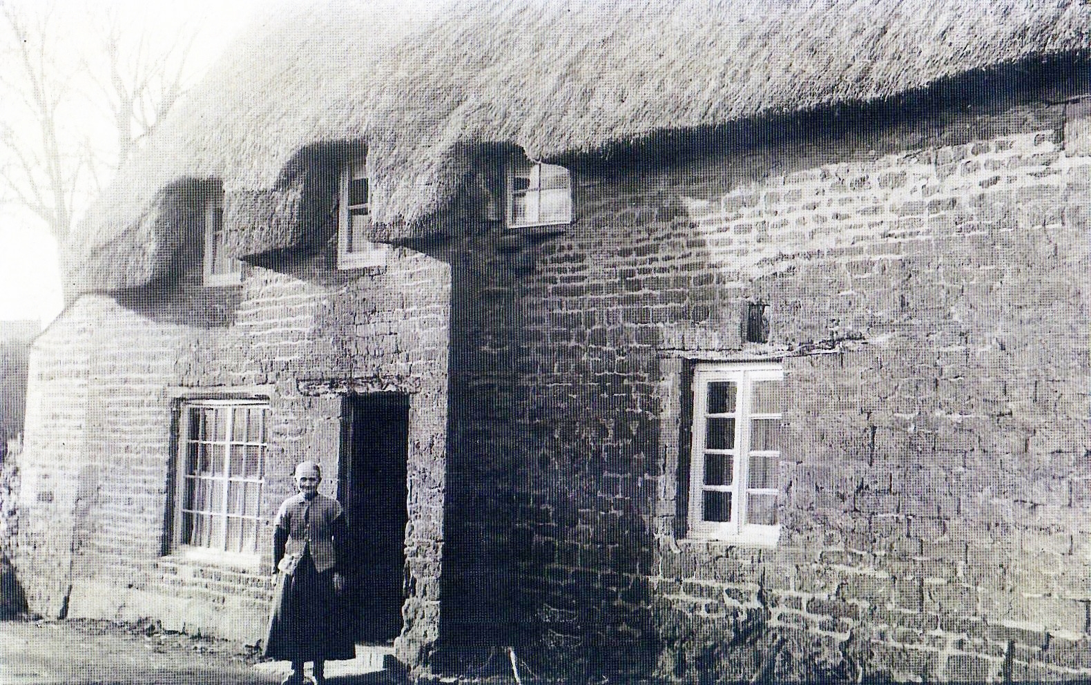 Cottage long gone at the bottom of Mould's Lane. Terry Haddon with his bike. Correction